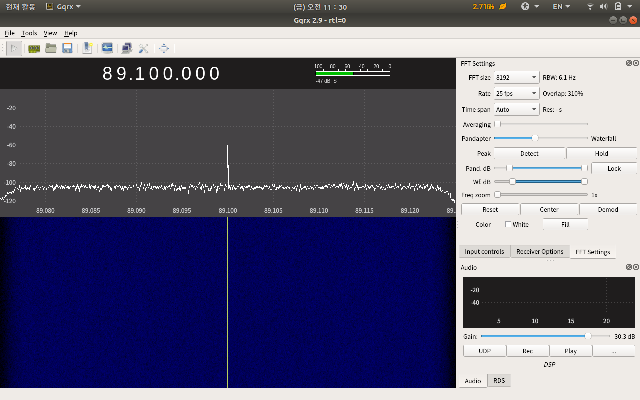 gqrx 라는 프로그램을 이용해서 sdr# 처럼 주파수를 보면서 재생이 가능하다는데