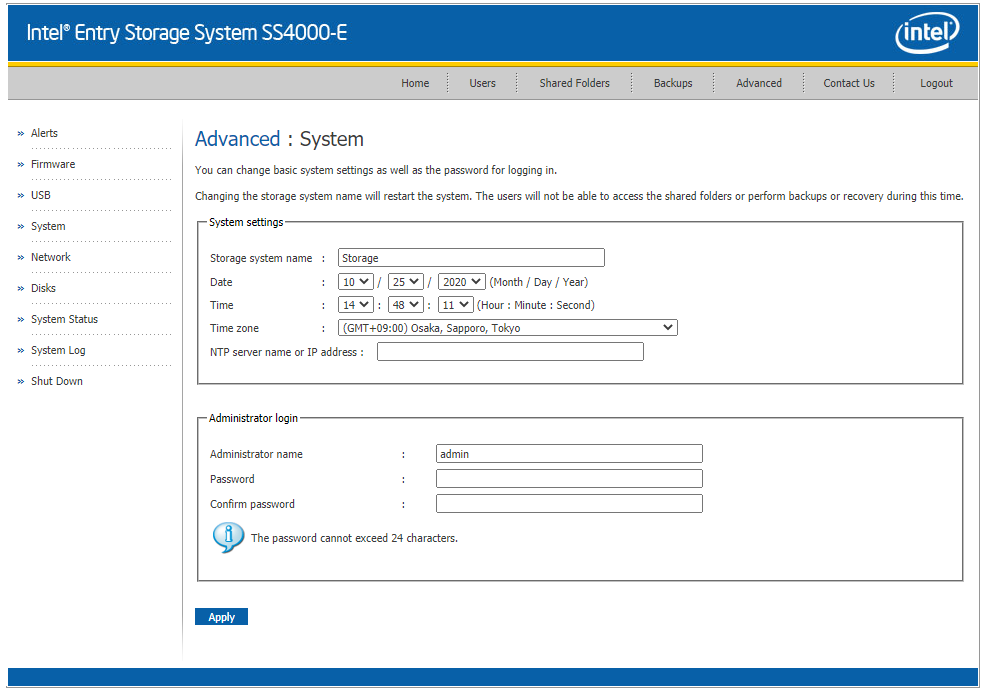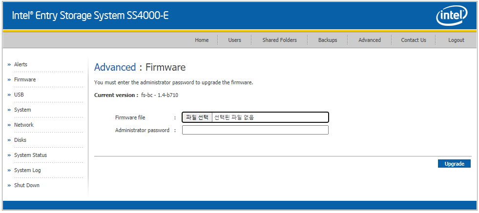 기본 암호는 admin / storage