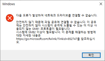 [링크 : https://docs.microsoft.com/.../smbv1-not-installed-by-default-in-windows]