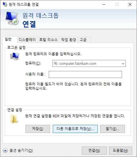 연결설정 - 다른 이름으로 저장 하면 rdp 확장자로 생긴다.