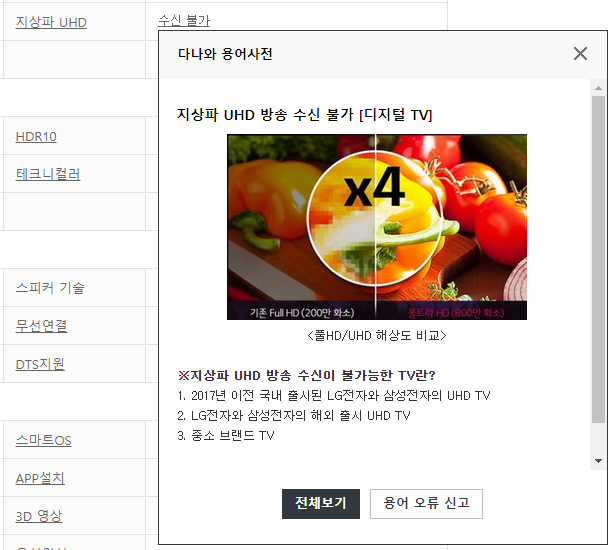클리어 쾀을 지원하기에 ATSC3.0 방식의 공중파 UHD 는 수신이 불가능할 것으로 보인다. OTL