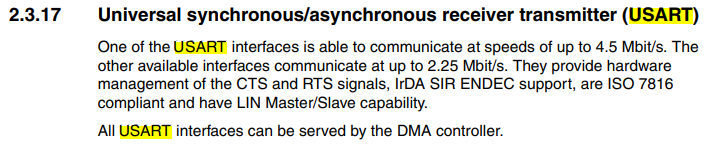 USART 번호가 없어서 모르겠지만 4.5Mbit/s 혹은 2.25Mbit/s 까지 설정이 가능하다는데