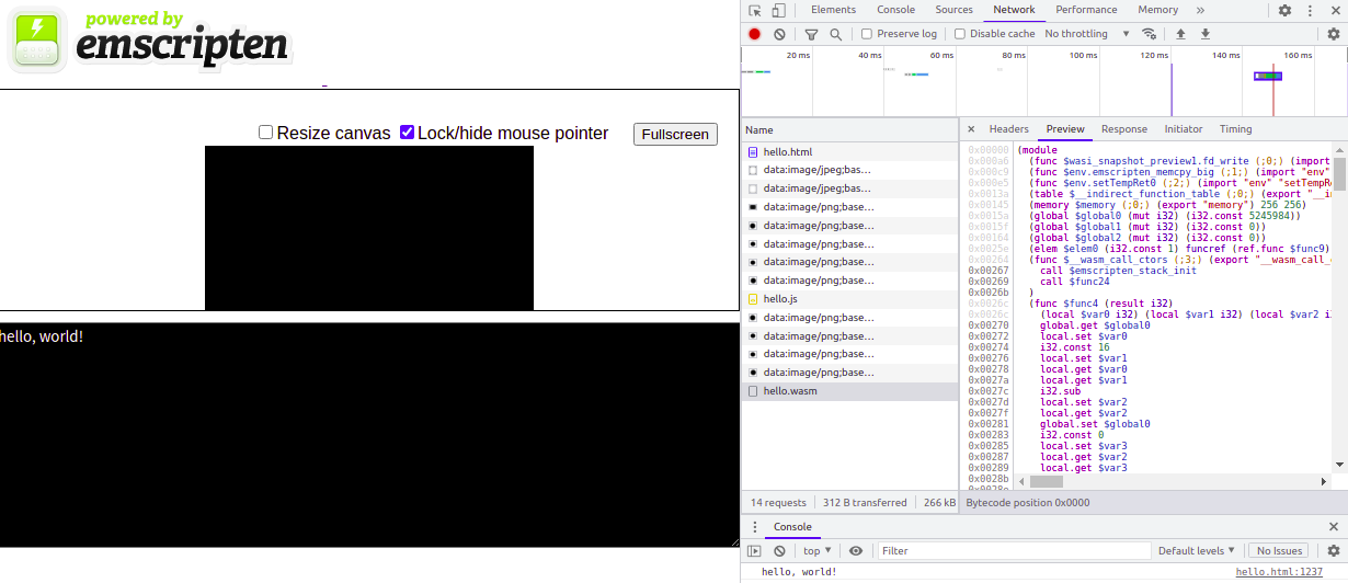 wasm 파일은 바이너리라 열어봐도 내용이 안보이는데, 크롬으로 실행하고 디버거로 보면 텍스트로 변환(?) 된다.