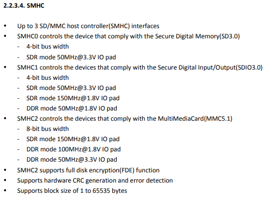 | SMHC0 is external SD/TF card. SMHC2 is external eMMC |