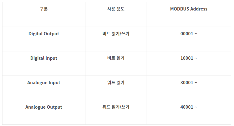 MODBUS Setup을 아래와 같이 설정하고