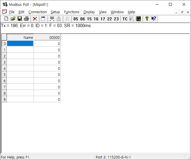 modbus poll 이라는 유틸리티를 이용해서(30일 무료)
