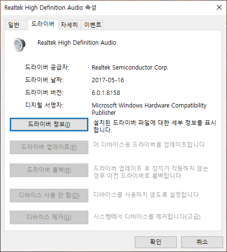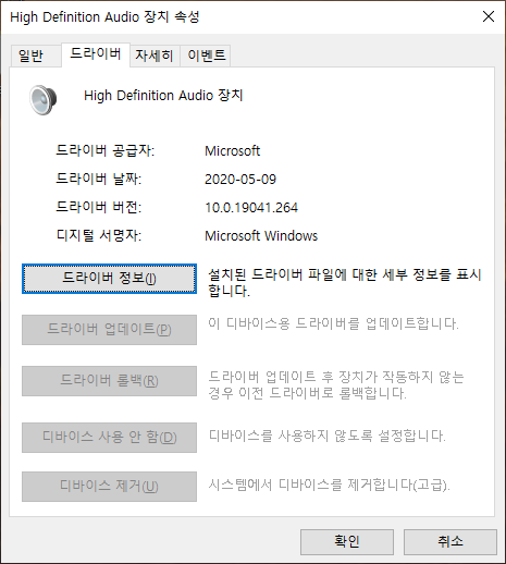 드라이버 삭제하면 아래와 같은 버전으로 출력되는데 확실히 소리가 끊어지는 문제는 해결되는 듯.