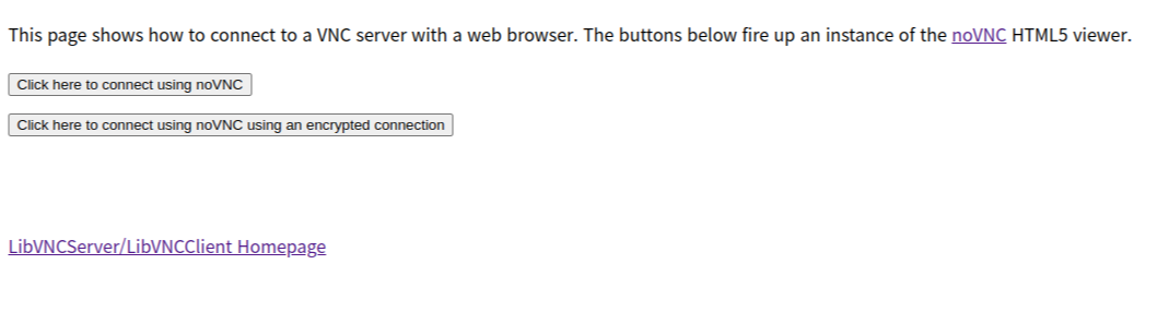 별다른 설정을 하지 않았다면 wss(websocket secure)를 안될테니 위에 "Click here to connect using noVNC"를 누른다.