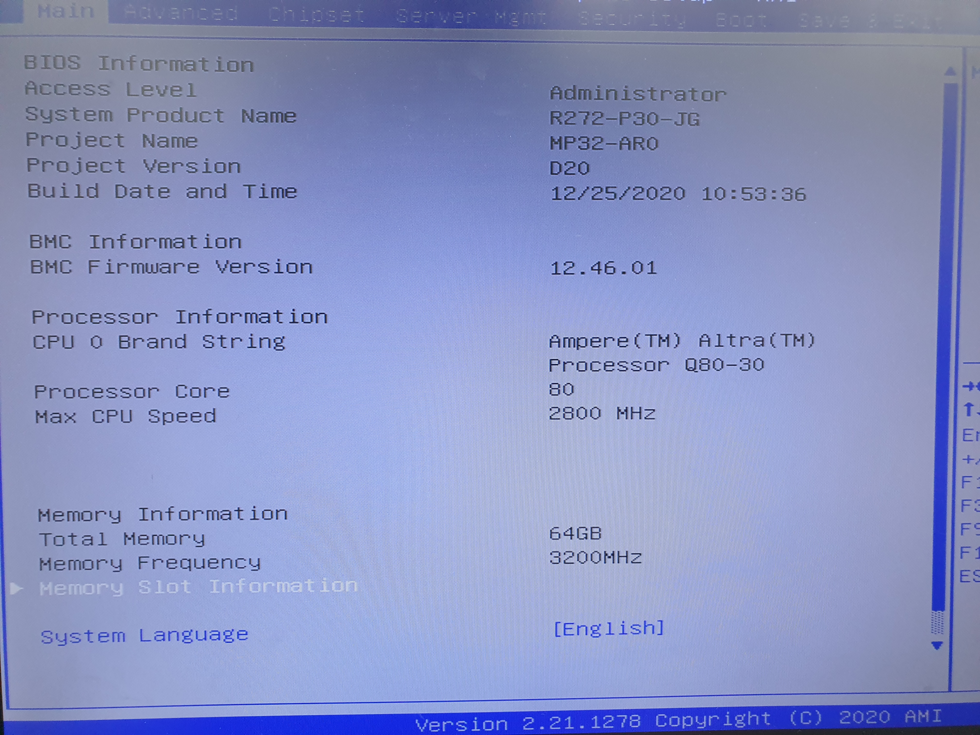 회사에 있는 녀석으로 Ampere 사의 Altra Q80-30을 탑재한 녀석이다.