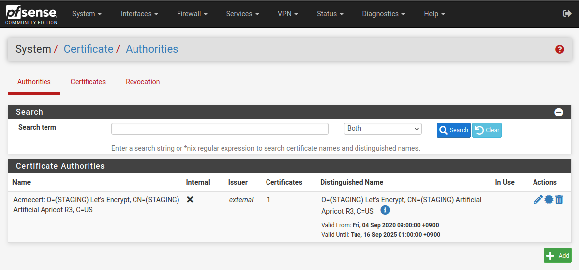 System / Certificate에 가면 Authroties에 추가된다.
