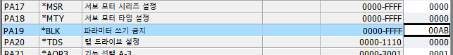 BLK는 PA19니까. 해당 파라미터를 변경하고 쓰고 재시작 하면