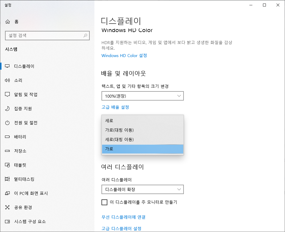 "가로" 로 설정하면