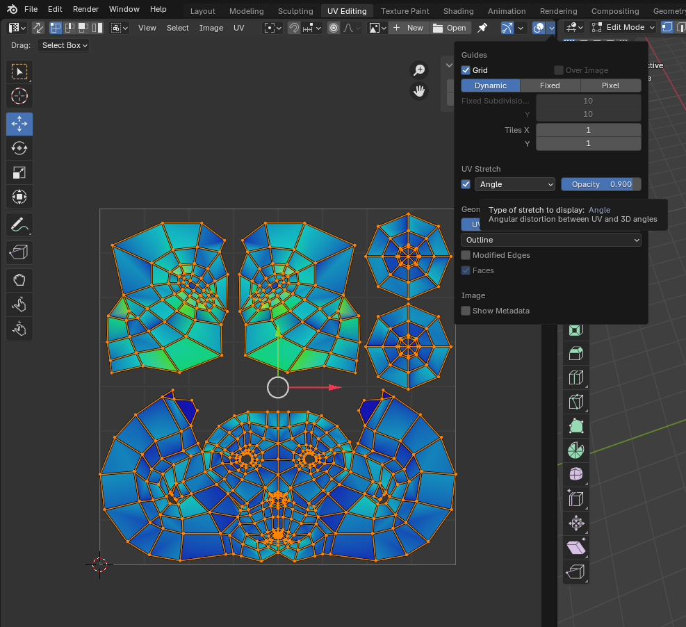 UV Stretch가 비활성화 되어있는데 이걸 활성화 하면 얼마나 늘려져서 왜곡이 되어있는지 알수 있다는데