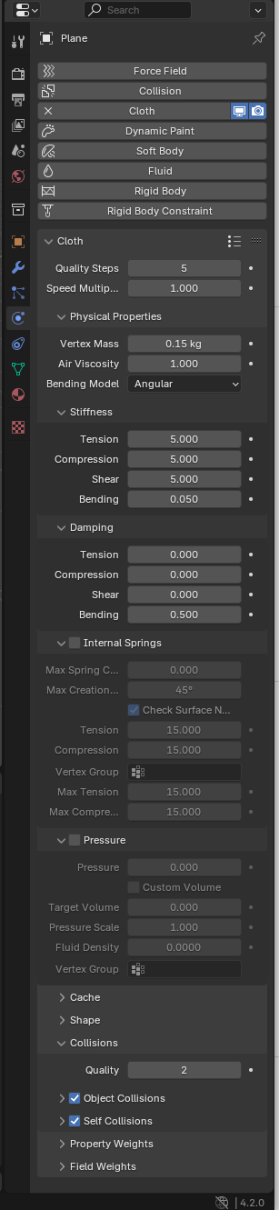 physics 탭에서 cloth