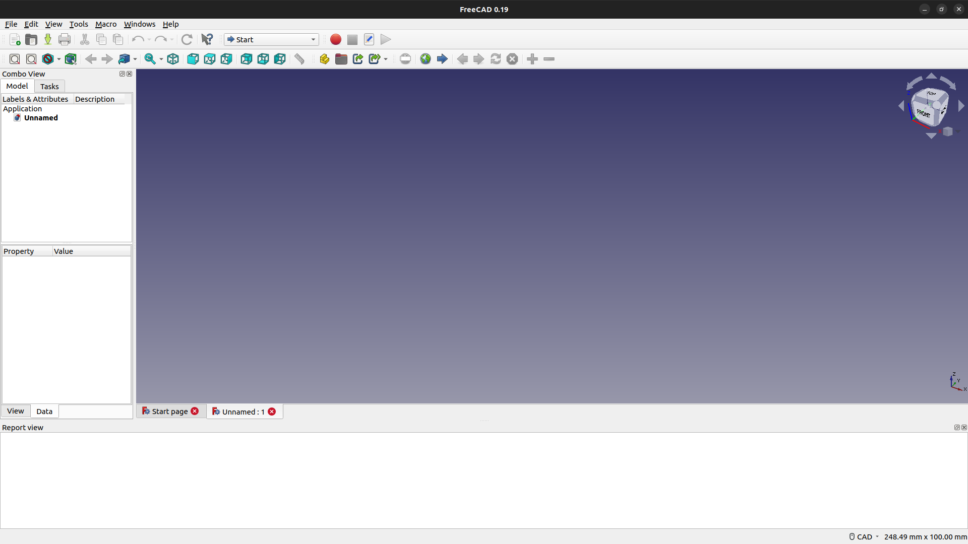 Step 1. FreeCAD 실행(0.19 버전)