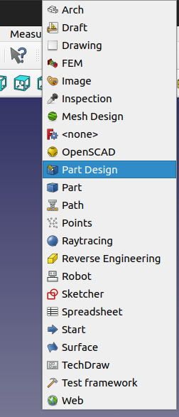 상당 툴바의 워크벤치가 Start로 되어있는데 그걸 Part Design으로 변경한다.