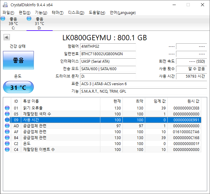 -> 직접 sata로 했는데도 intel ssd 라고 안뜨고 저렇게 뜬다 머지?