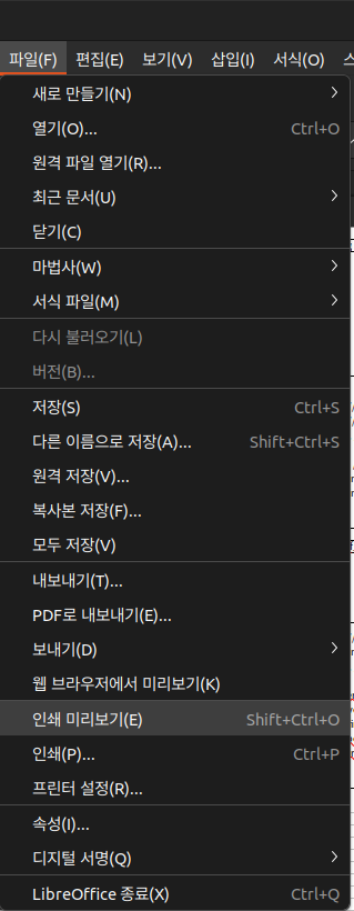 메뉴에서는 파일 - 인쇄 미리보기