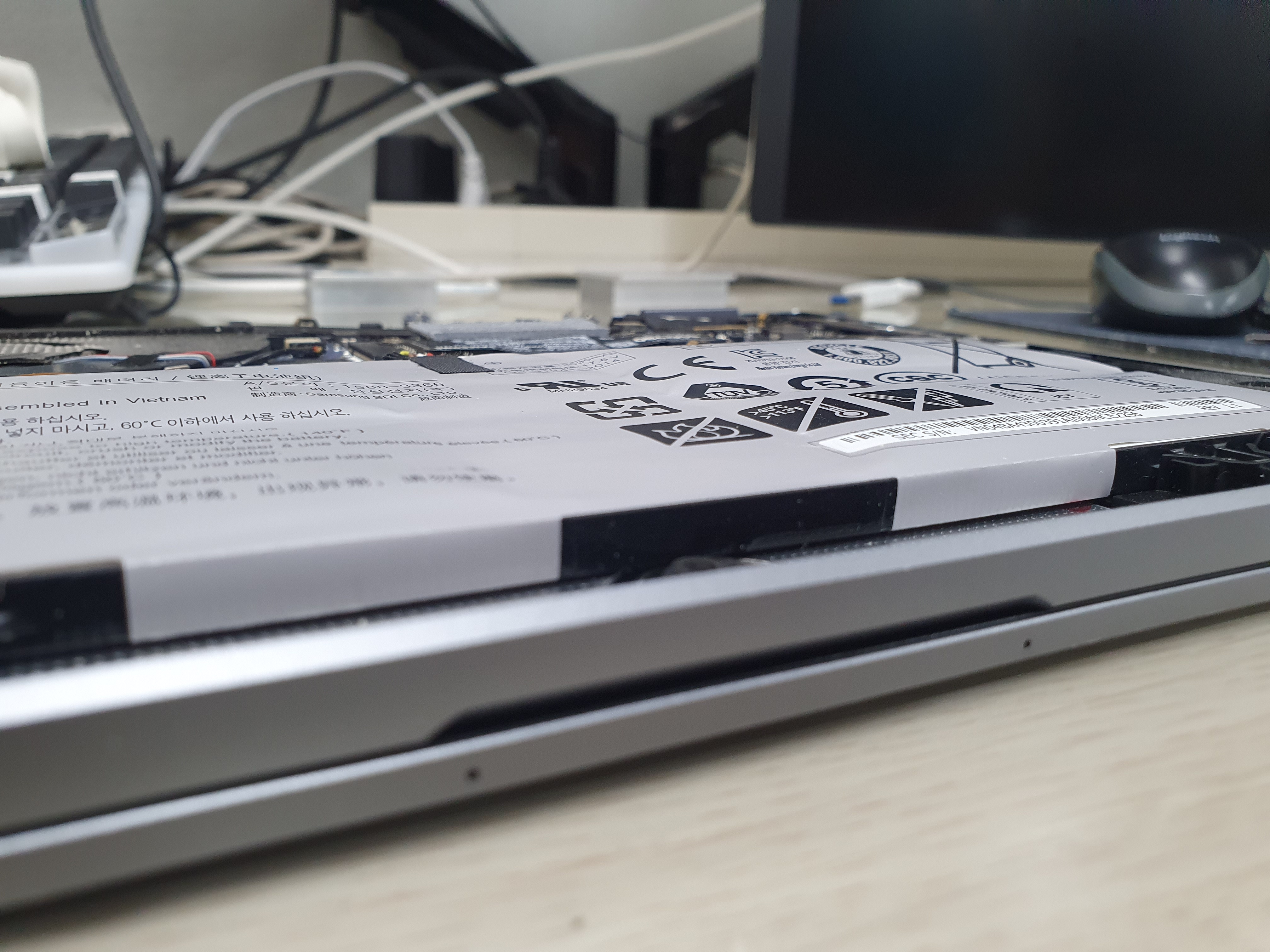 타블렛 모드로 키보드를 아래로 하고 쓰다보니, 배터리가 배부른지도 모르고 있었는데