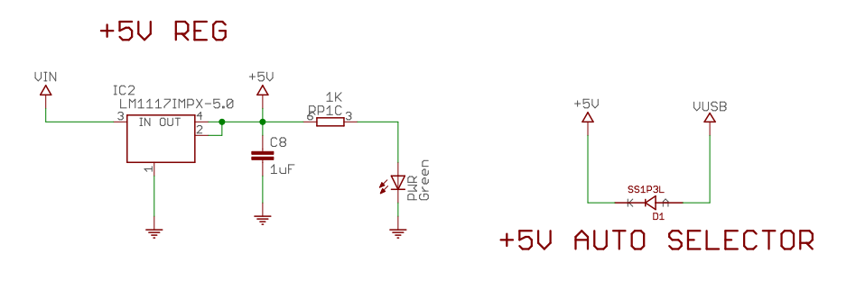auto selector에 의해서 VUSB가 +5V로 연결되는데, 레귤레이터를 거치지 않고 곳곳에 연결된다.