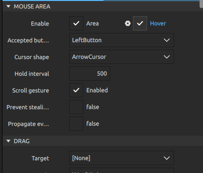 다시보다 보니 기본 컴포넌트에 mouse area 라는 것이 있다.