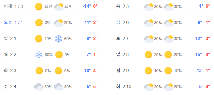 는 개뿔 -_- 다음주 -15도 면 끝난게 아니지!