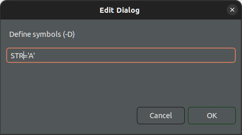 | $ gcc -E "-DSTR='b'" t.c $ gcc -E -DSTR=\'b\' t.c # 0 "t.c" # 0 "<built-in>" # 0 "<command-line>" # 1 "/usr/include/stdc-predef.h" 1 3 4 # 0 "<command-line>" 2 # 1 "t.c" void main() { printf("%c\r\n", 'a'); printf("%c\r\n", 'b'); } |