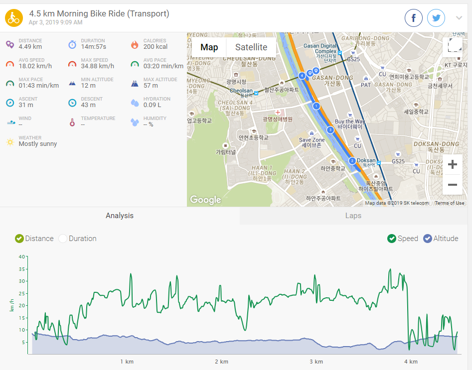 근 2년만에 엔도몬도 다시 깔고 아침에 일찍 출근해져서 자전거 탐