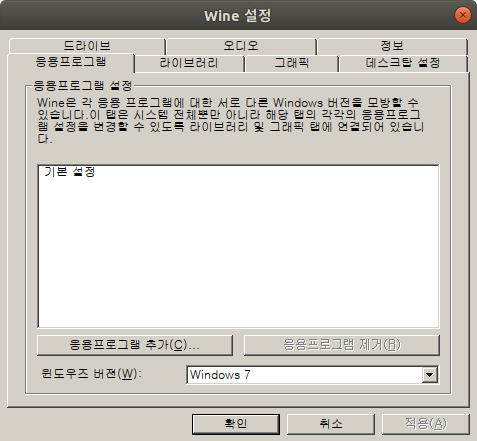 이상하게 실행하면 바로 뻗어버려서 xp 버전 + winecfg로 winXP로 맞추고