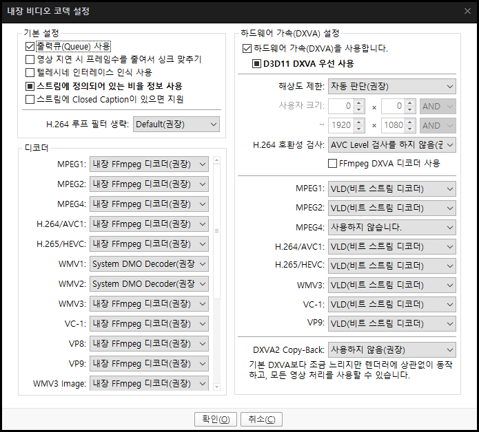 하라는대로 코덱 깔고 설정하니 문제없이 잘 된다.