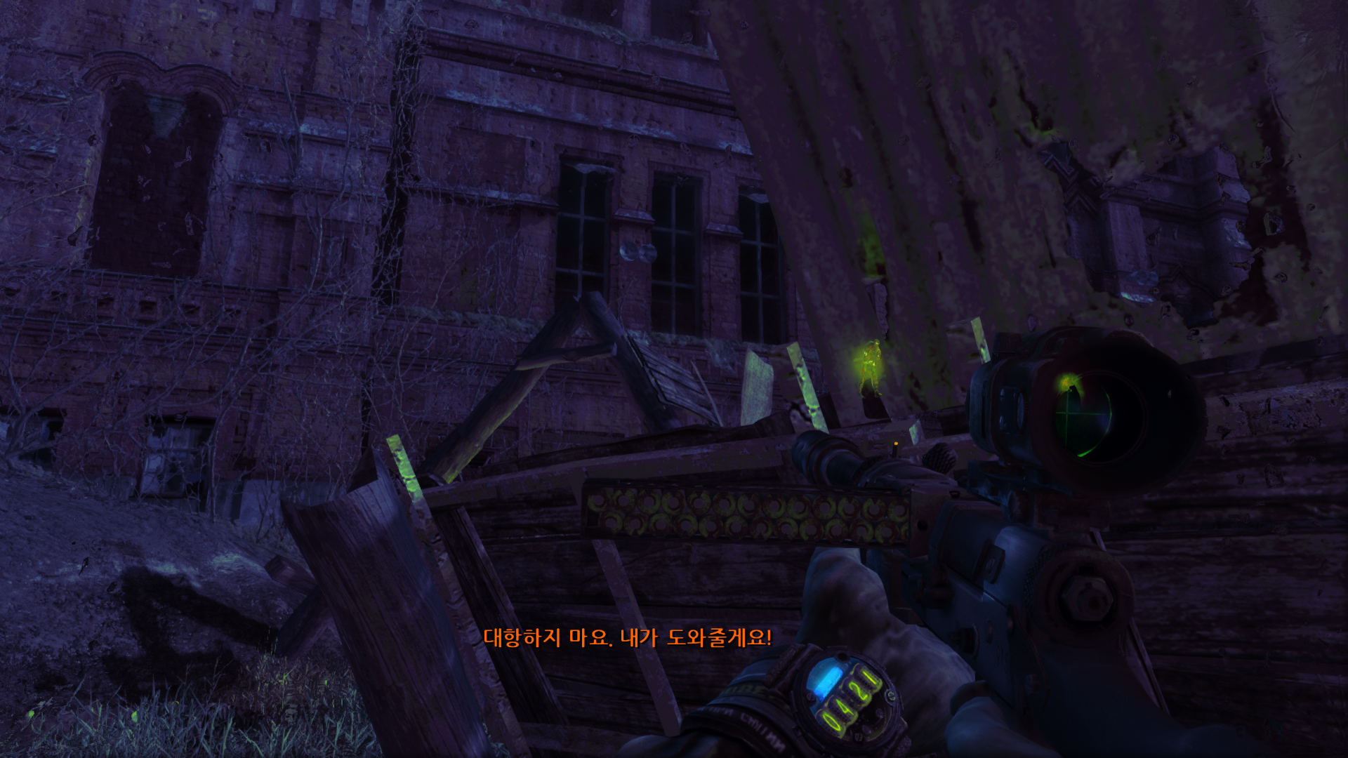 미친듯이 10놈 가까이 총질을 하는데 적외선 비전(?) 처럼 보여주면서 환하게 나오다 보니
