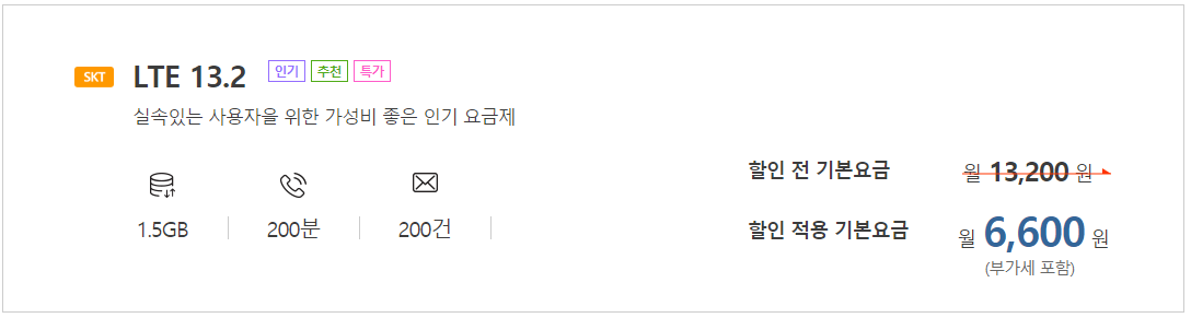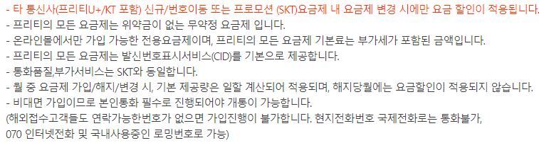 "프로모션(SKT) 요금제 내 요금제 변경시에만 요금 할인이 적용됩니다."