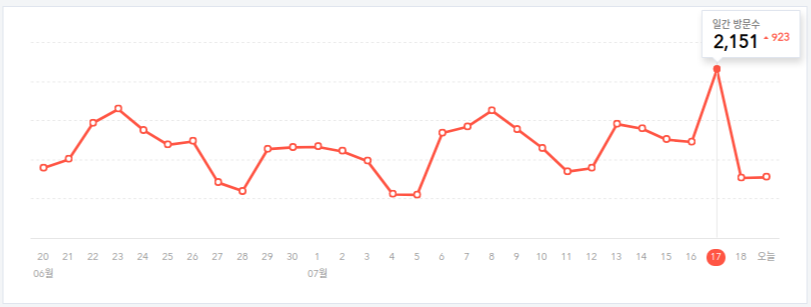 갑자기 1400명도 겨우 오던 블로그에 별다른 활동한것도 없는데 2151명이 찍히는 일이 발생