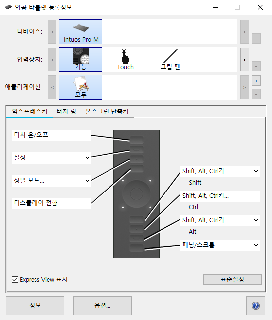 윈도우용 드라이버가 설치되지 않으면 작동을 하지 않는다. 터치, 펜. 버튼 모두!