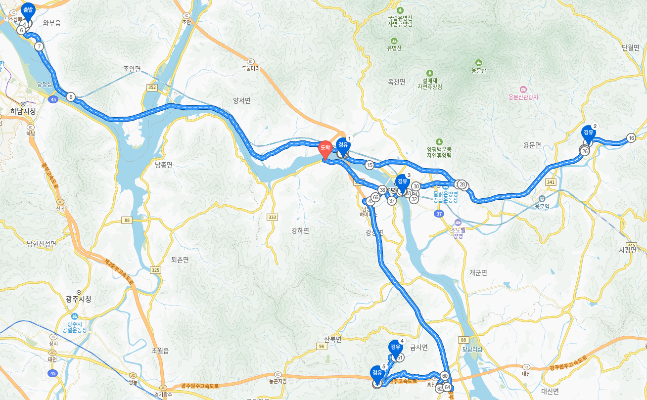남양주 덕소 - 양평 - 여주식으로 일정을 작성했는데