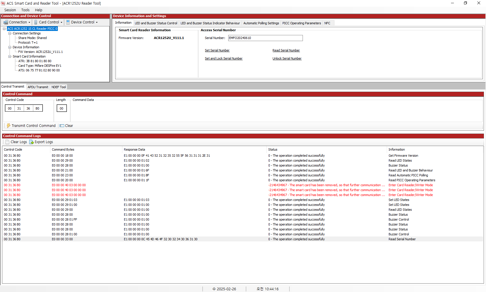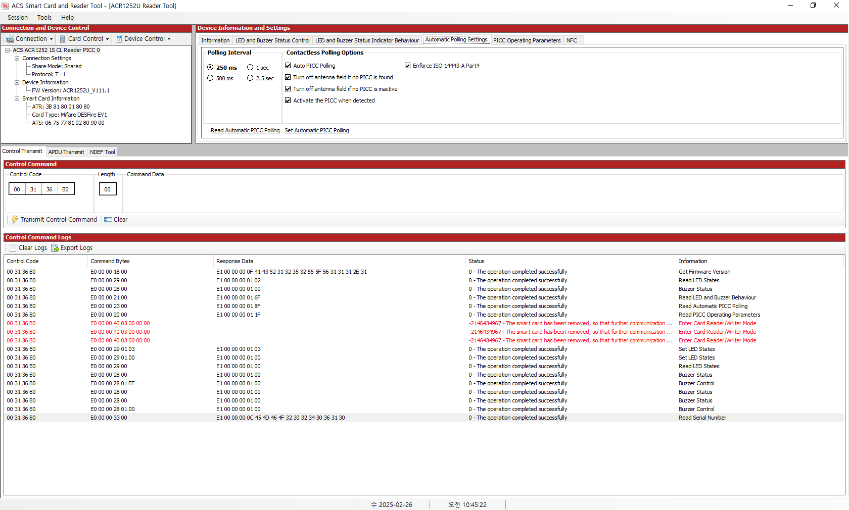 예제 프로그램 중에 NTAG 라는 게 있어서 실행해보니, 해당하는 카드가 없다고 밷는데