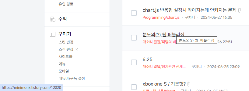 이전에는 글 작성 번호로 1 부터 시작해서 글 관리에서 뜨는 글 갯수가 그대로 사용되었었는데