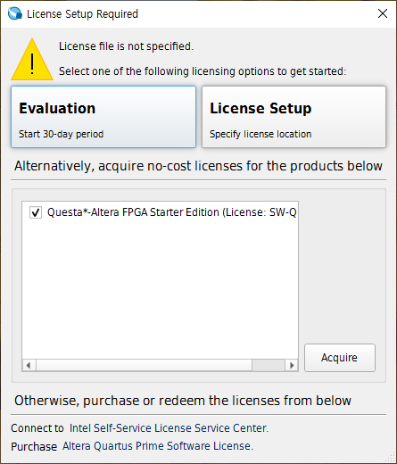 Questa*-인텔® FPGA Edition 빠른 시작: 인텔® Quartus® Prime Pro Edition 페이지에서 라이선스를 얻는 방법에 대한 정보를 찾을 수 있습니다.