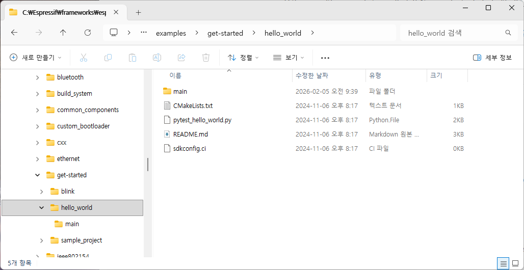 그 안에  esp-idf용 sdkconfig 파일까지 생성된다(다르게 말하면 프로젝트 생성시 개발할 타겟 보드를 잘 설정해야 한다는 의미)