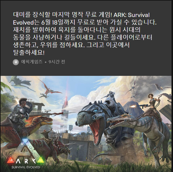 ARK 쪽에는 DLC 들 무료로 몇개 풀리는 듯 하니 다 받아 놔야지