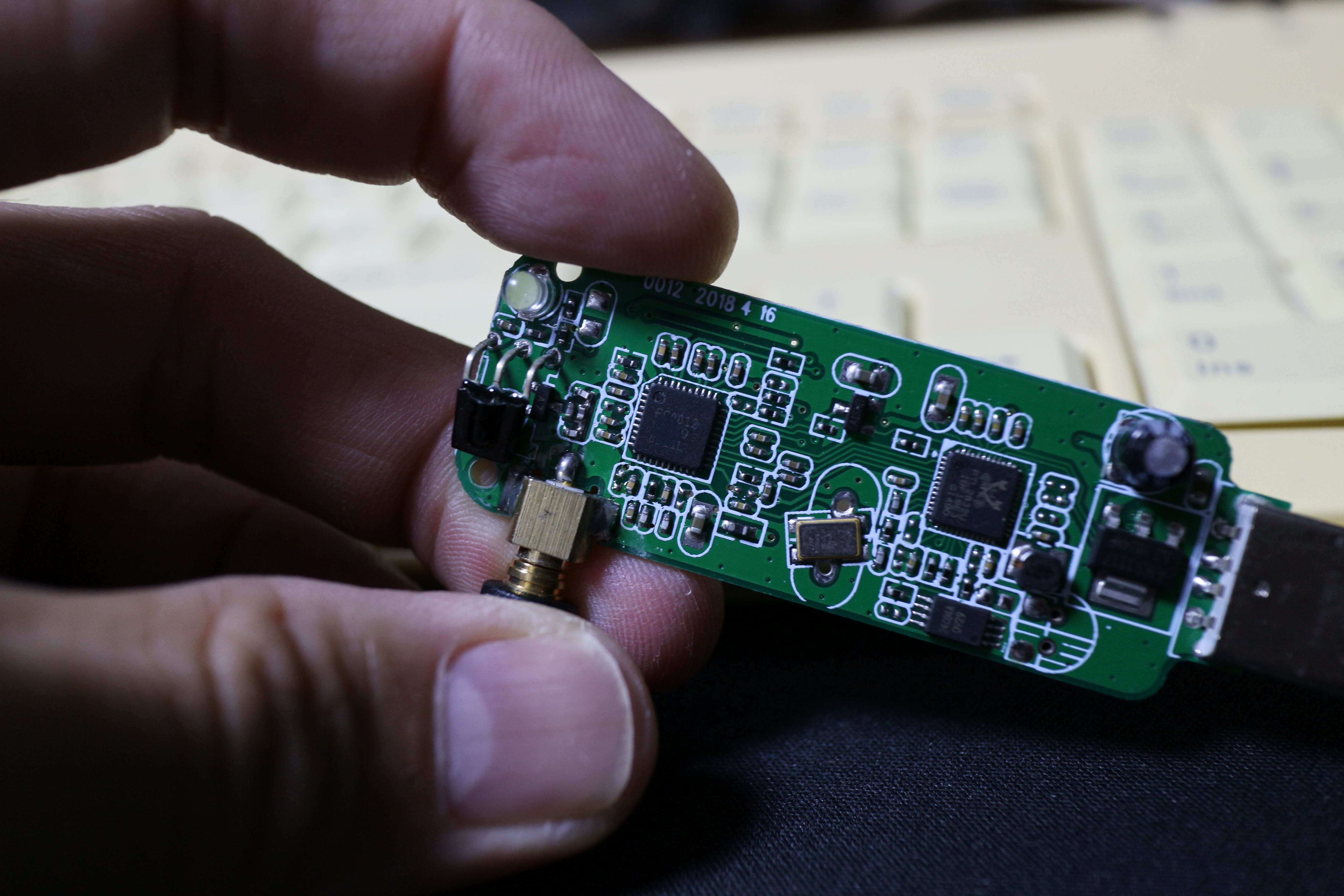 왼쪽의 FC0012 칩과 오른쪽의 RTL2832U