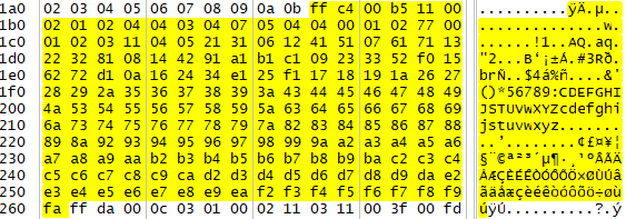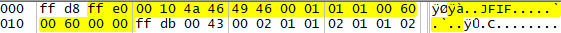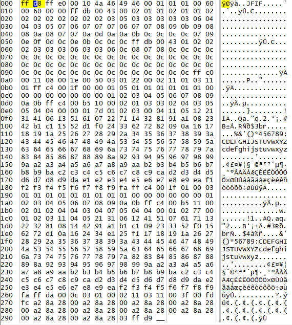 DQT (discrete qunatunization table?) * 2 xFF xDB