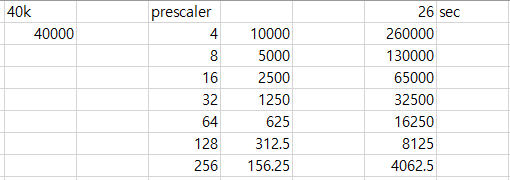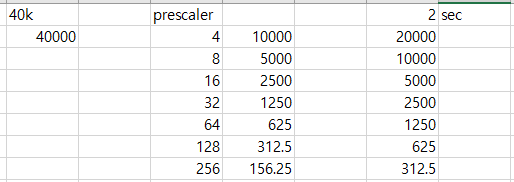 입력 클럭을 40k로 잡고 프리스케일러에 따른 클럭을 계산하고