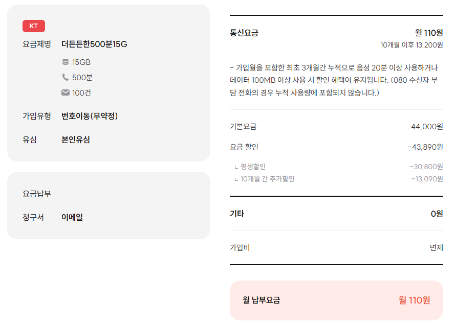 아무튼 6개월간은 110원/월 * 3!