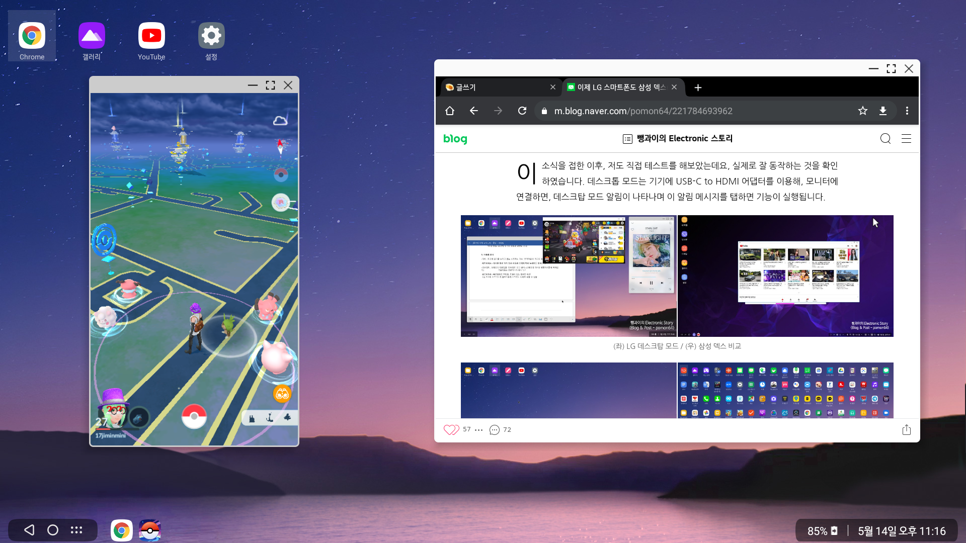 삼성 덱스랑은 달라서 그런진 모르겠지만 배경화면의 아이콘은 클릭으로 실행이 안된다.