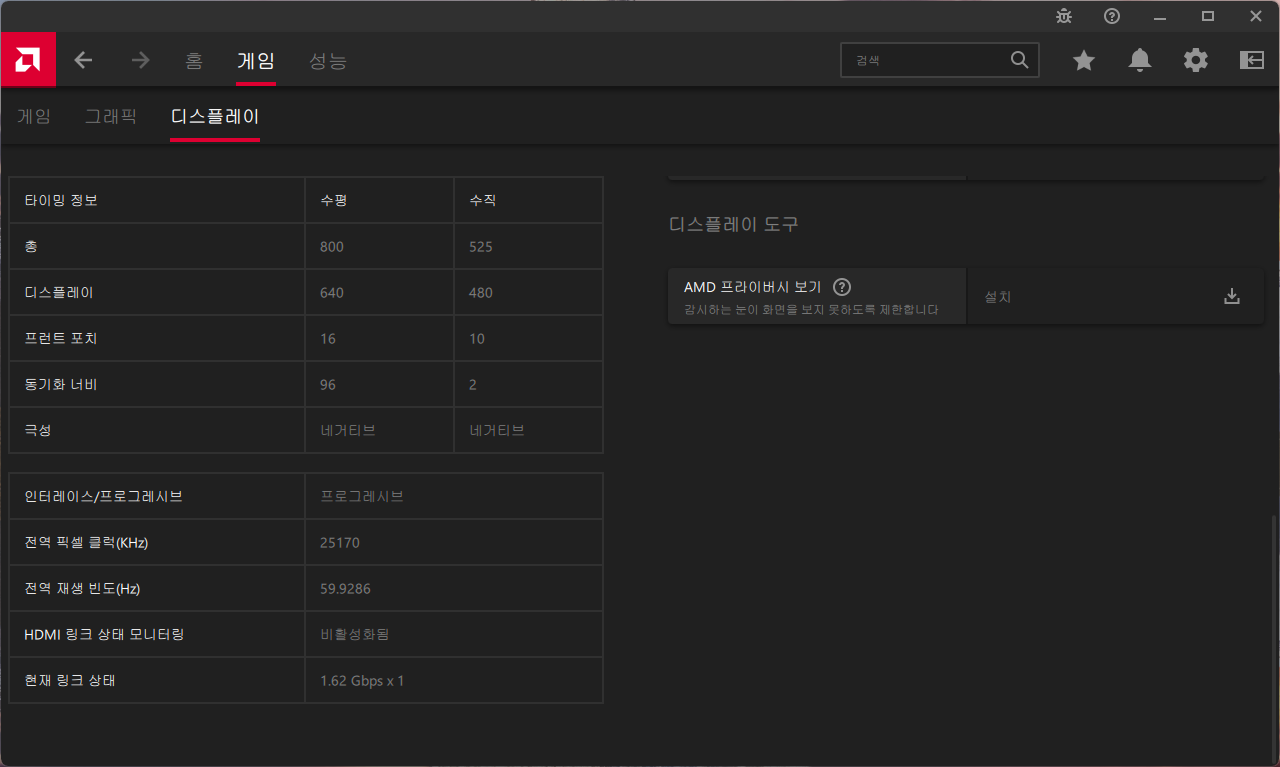임의로 60Hz로 넣었더니 이제 모니터로 인식 자체가 안된다. ㅠㅠ