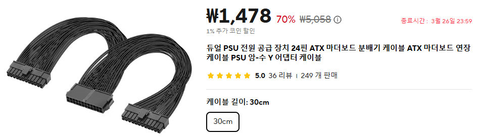 | 듀얼 PSU 전원 공급 장치 24핀 ATX 마더보드 분배기 케이블 ATX 마더보드 연장 케이블 PSU 암-수 Y 어댑터 케이블 |