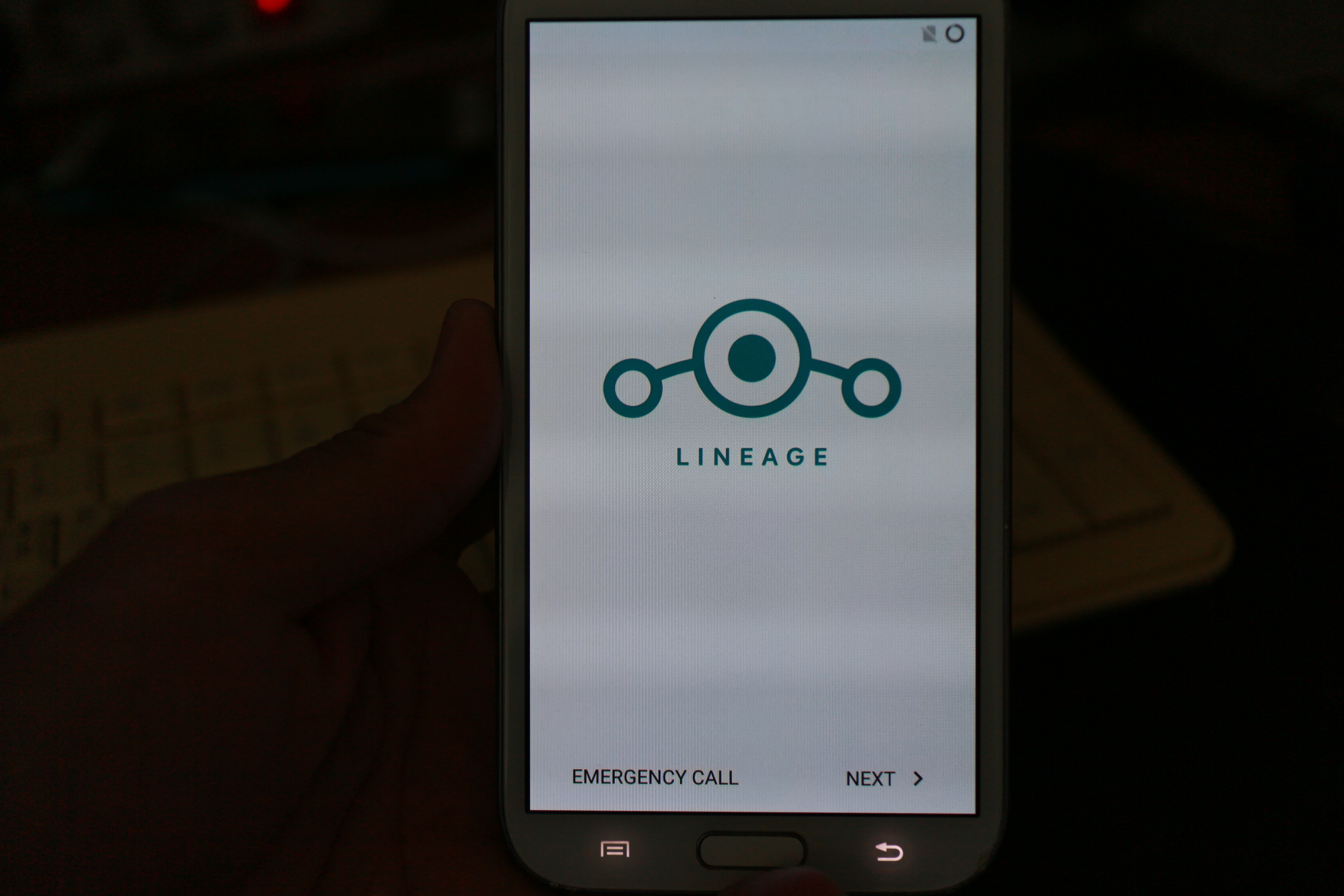 lineageOS가 다 올라왔으면, 물리버튼 back을 누르거나 하단의 화면상의 백 버튼을 눌러서 돌아간다.