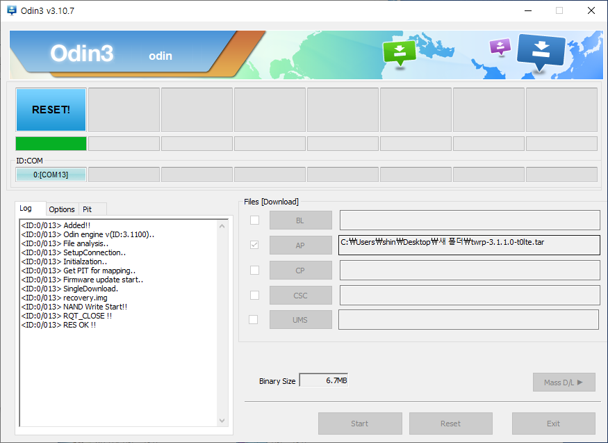AP에 twrp 이미지 올리고 Start