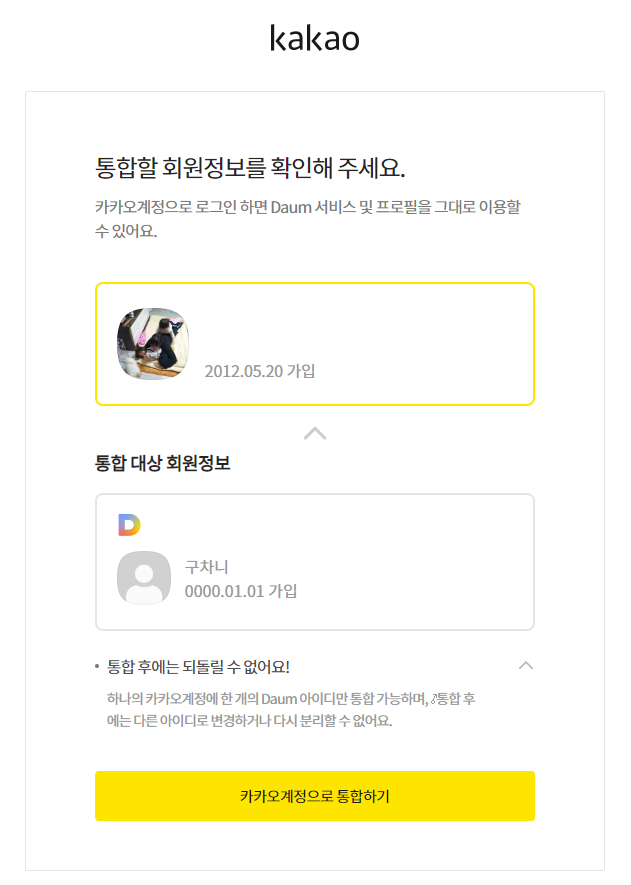 이제 이메일/다음 계정을 카카오로 강제 통합 -_-